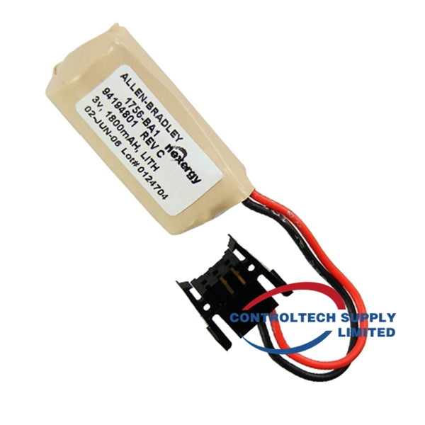 The AB 1756-BA1 is a lithium battery module for the Allen-Bradley ControlLogix programmable logic controller (PLC). It is a 3V DC battery with a nominal capacity of 1800mA. The battery is used to power the PLC's real-time clock and other critical components when the PLC is turned off or when there is a power outage.